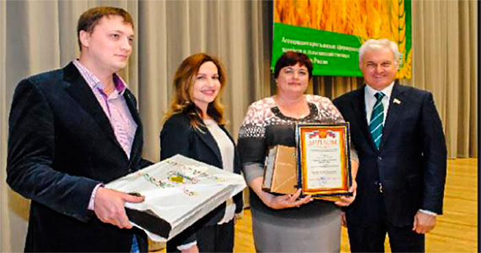 Как раз на этом съезде и прошло награждение победителей конкурса на лучшую молочную семейную ферму. Призы победителям вручал в том числе и представитель АО «Капитал-ПРОК» Александр Сысоев.