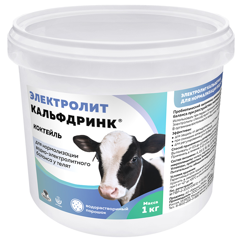 Водорастворимый пробиотический витаминно-минеральный коктейль Электролит Кальфдринк - кормовая добавка для нормализации водно-электролитного баланса у телят. По внешнему виду кормовая добавка представляет собой сыпучий порошок от белого до светло-бежевого цвета, легко растворимый в воде. Выпаивание коктейля телятам при первых признаках нарушения работы пищеварительного тракта:
