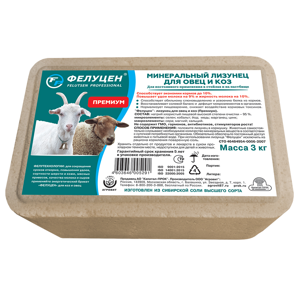 Фелуцен лизунец для овец и коз (минеральный, Премиум) (брикет, 3кг)