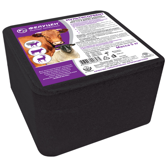 Фелуцен минеральный лизунец для сельскохозяйственных и диких животных Мультисорбент предназначен для стимуляции пищеварения и восполнения дефицита поваренной соли КРС, коз, овец и диких животных. Оказывает энтеросорбирующее, дезинтоксикационное и противодиарейное действие и способствует: