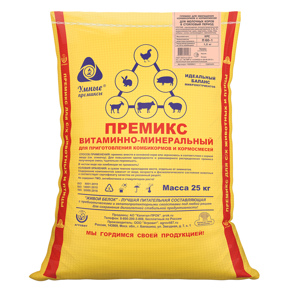 Премикс П 60-1 для молочных коров в стойловый период (1%) (25кг)
