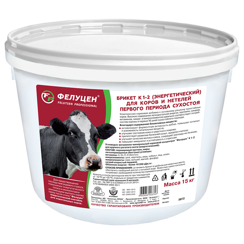 УВМКК Фелуцен К1-2 для крупного рогатого скота (энергетический, литера 3872) (брикет, 15кг)