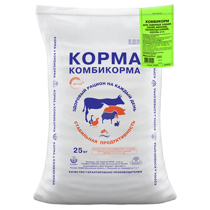 Комбикорм для северных оленей, лосей, маралов, пятнистых оленей, косуль (25кг)