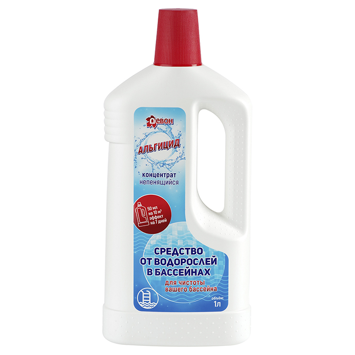 Средство Девон Альгицид от водорослей в бассейнах, концентрат, непенящийся осветляет воду в бассейнах, уничтожает водоросли и предупреждает их появление.