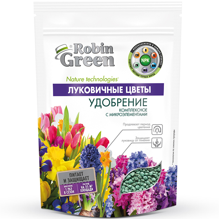 Удобрение сухое Робин Грин минеральное гранулированное Луковичные Цветы дойпак (1кг)