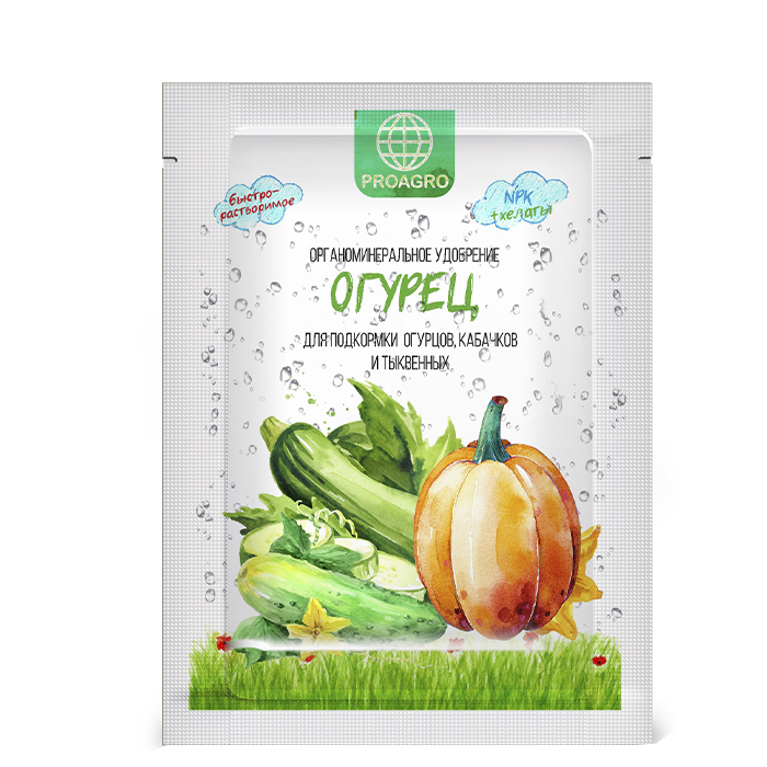 Огурец - быстрорастворимое органоминеральное универсальное удобрение для подкормки огурцов, кабачков, тыквы. Содержит комплекс важных элементов и хелатов.