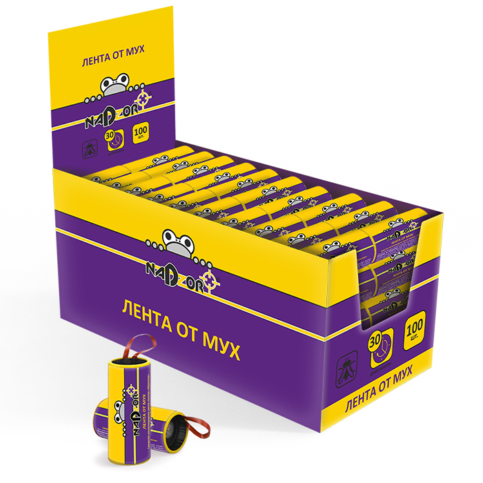Nadzor (Надзор) Лента от мух с кнопкой, в шоубоксе (100 шт) (Мухолов)