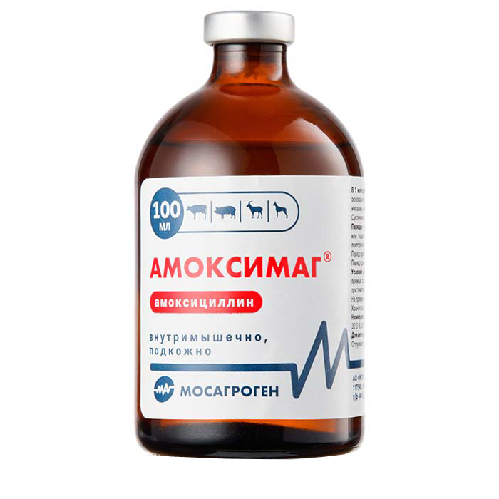 Амоксимаг (Amoximag) - антибактериальный лекарственный препарат для лечения крупного рогатого скота, овец, коз, свиней, собак и кошек при инфекционных болезнях. По внешнему виду препарат представляет собой маслянистую суспензию бело-желтого цвета. При хранении допускается расслоение суспензии, исчезающее при взбалтывании.