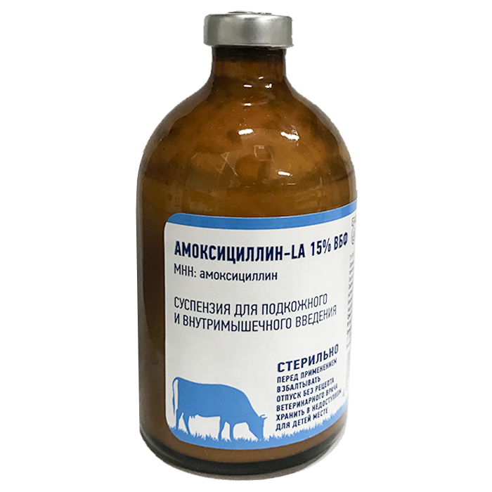 Амоксициллин-LА 15 % ВБФ (Amoxycillinum LA 15 % VВF) препарат для лечения крупного и мелкого рогатого скота, свиней, собак и кошек при инфекционных болезнях. По внешнему виду препарат представляет собой суспензию от белого до светло-желтого цвета. В процессе хранения допускается расслоение суспензии, легко разбивающееся при встряхивании.