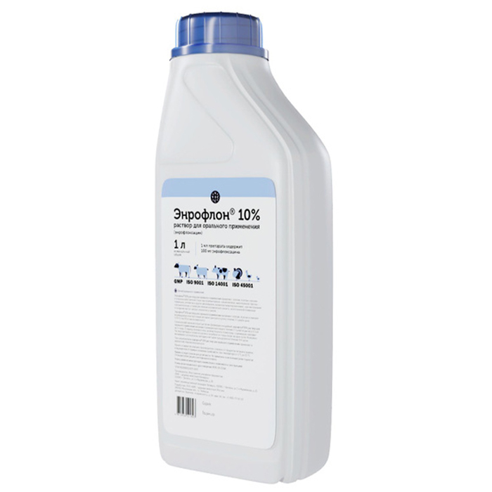 Энрофлон 10% - раствор для орального применения для лечения сельскохозяйственных животных, в том числе птицы при бактериальных и микоплазменных болезнях. Энрофлон 10% раствор для орального применения представляет собой прозрачную жидкость от слегка желтого до желтого или желто-розового цвета.