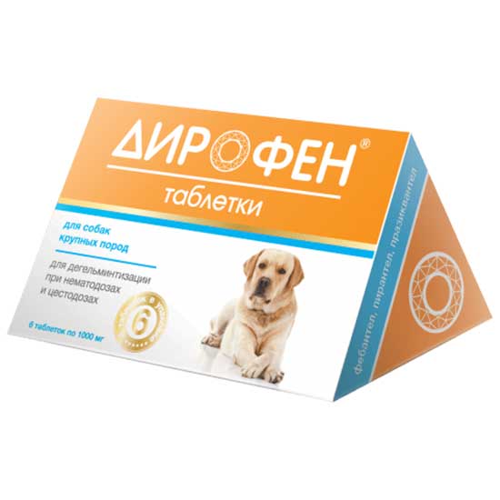 Дирофен таблетки для собак крупных пород (6 таблеток по 1,0г)
