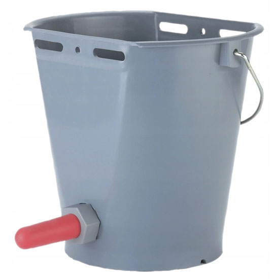 Ведро для поения телят с соской и креплением предназначено для выпаивания молоком и заменителями телят при их выращивании. В поилке имеется специальный шариковый клапан. Инновационный гигиенический клапан в поилке позволяет дозированно пропускать порции молока и смесей теленку и не позволяет их разливу. а также препятствует попадание микробов в емкость поилки. Ведро - легко подается очищению и мойке. Внутри ведра-поилки с двух сторон имеется шкала для контроля объема расхода молочной смеси.