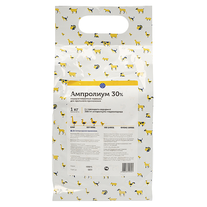 Ампролиум 30% — антикокцидийный препарат для лечения и профилактики кокцидоза у цыплят-бройлеров, ремонтного молодняка и племенной птицы.