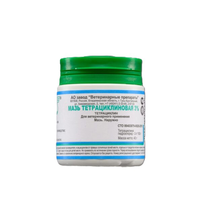 Мазь тетрациклиновая 3% - противомикробный препарат широкого спектра действия, применяемый для лечения кожных заболеваний у животных. Обладает выраженным антибактериальным и ранозаживляющим эффектом.