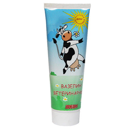 Вазелин ветеринарный применяют для смазывания вымени животных после доения с целью предотвращения образования трещин.