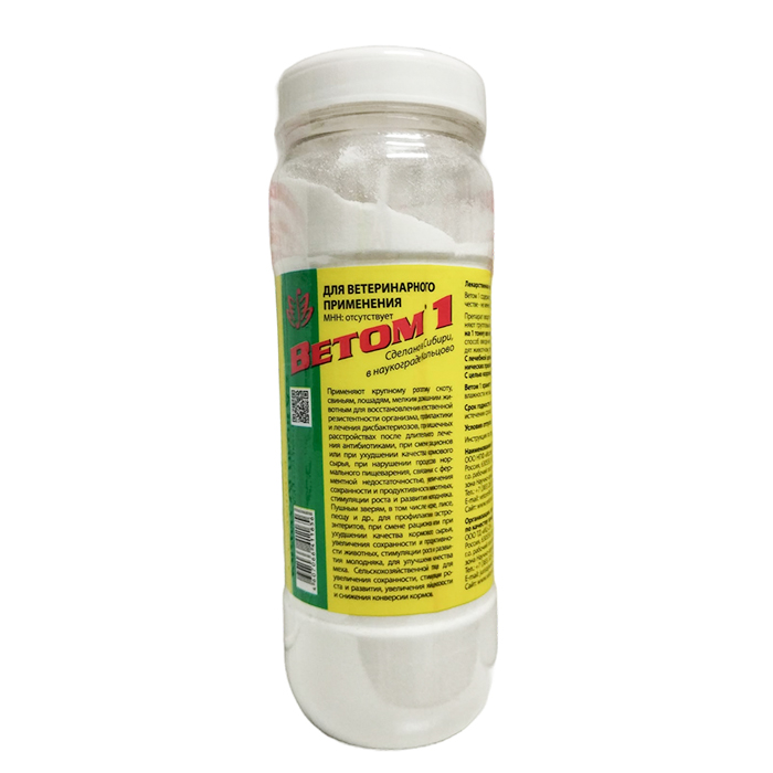 Ветом 1 – лекарственный препарат применяется для профилактики и лечения желудочно-кишечных заболеваний. По внешнему виду Ветом 1 представляет собой мелкодисперсный порошок белого цвета, без запаха, растворимый в воде, с образованием осадка белого цвета.