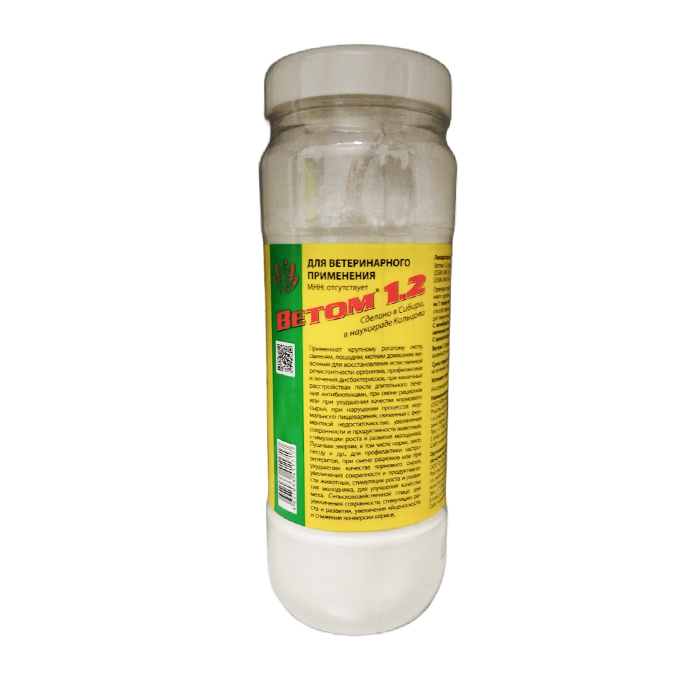 Ветом 1.2 – лекарственный препарат применяется для профилактики и лечения желудочно-кишечных заболеваний. По внешнему виду Ветом 1 представляет собой мелкодисперсный порошок белого цвета, без запаха, растворимый в воде, с образованием осадка белого цвета.