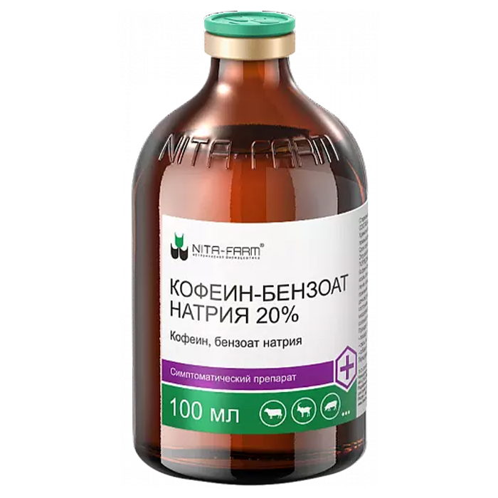 Кофеин-бензоат натрия 20% - ветеринарный лекарственный препарат в форме раствора для инъекций, обладающий стимулирующим действием на центральную нервную и сердечно-сосудистую системы животных. Оказывает стимулирующее действие на центральную нервную систему, повышая физическую активность и уменьшая усталость.