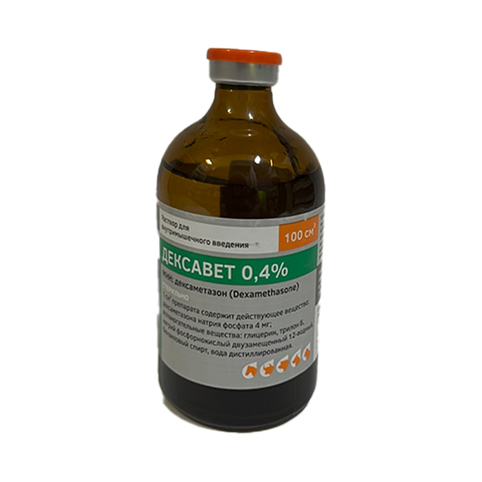 Дексавет 0,4% (Dexavetum) - раствор для инъекций применяют животным при нарушении обмена веществ. По внешнему виду препарат представляет собой прозрачную бесцветную или слегка желтоватую жидкость.