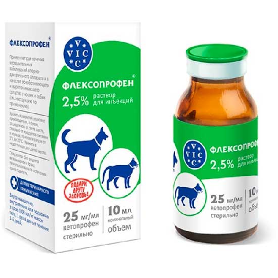 Флексопрофен применяют для лечения воспалительных заболеваний опорно-двигательного аппарата (в том числе арритов, артрозов, вывихов, отеков, грыж межпозвоночных дисков, синовитов, тендосиновитов), болевого синдрома различной этиологии (травматическая и послеоперационная боль, колики), а также гипертермии собак, кошек, спортивных лошадей, свиней и крупного рогатою скота.. -