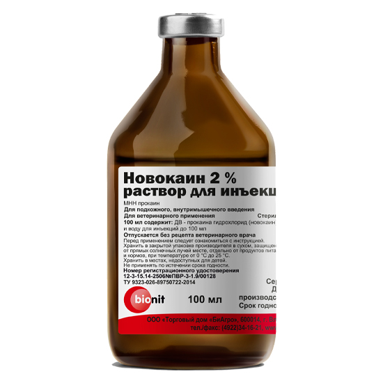 Новокаин 2% раствор для инъекций – лекарственное средство применяют в качестве местоанестезирующего средства для животных. Представляет собой прозрачную бесцветную стерильную жидкость.