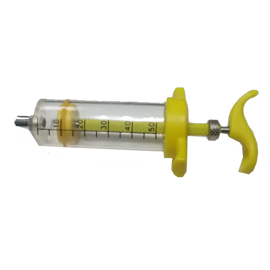 Шприц нейлоновый с упором для пальцев 50 мл Луер-Лок используют для вакцинации сельскохозяйственных животных. Упор для выдавливания лекарства имеет эргономичный изгиб под форму пальца, тем самым делая работу по вакцинации максимально комфортной.