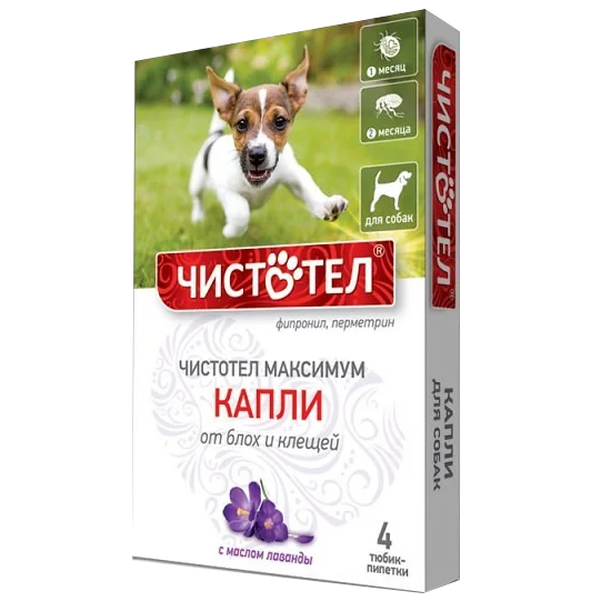 Чистотел Максимум капли (Chistotel Maximum drops) - раствор для наружного применения для борьбы с эктопаразитами собак и щенков. Препарат представляет собой прозрачную маслянистую жидкость светло-желтого цвета.