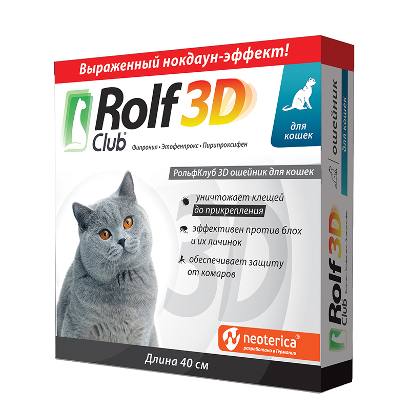 Рольф Клаб (Rolf club) 3D Ошейник от клещей и блох для кошек (40см) (R432)