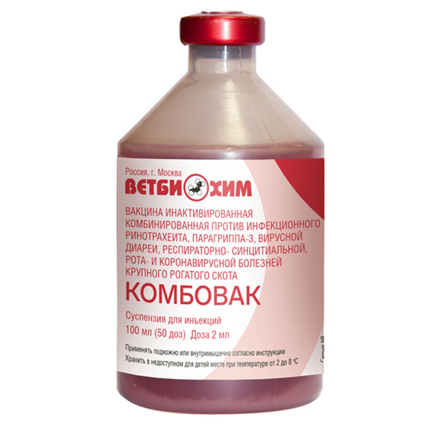 Комбовак-А – вакцина против инфекционного ринотрахеита, парагриппа-3, вирусной диареи, респираторно-синцитиальной, рота-, коронавирусной болезней и аденовирусной инфекции крупного рогатого скота. По внешнему виду вакцина представляет собой эмульсию белого или бледно-розового цвета, при хранении которой допускается незначительное отслоение эмульсии.