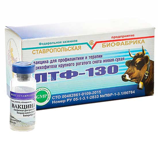 Вакцина ЛТФ-130 для профилактики и терапии трихофитоза крупного рогатого скота.