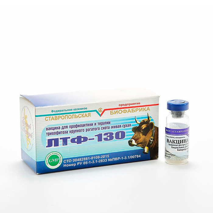 ЛТФ-130 — вакцина для профилактики и терапии трихофитоза крупного рогатого скота живая сухая.