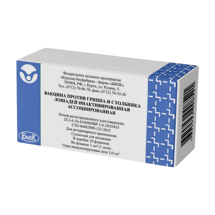 Вакцина против гриппа и столбняка лошадей инактивированная ассоциированная 1доза/фл (10 флак)(БИОК)