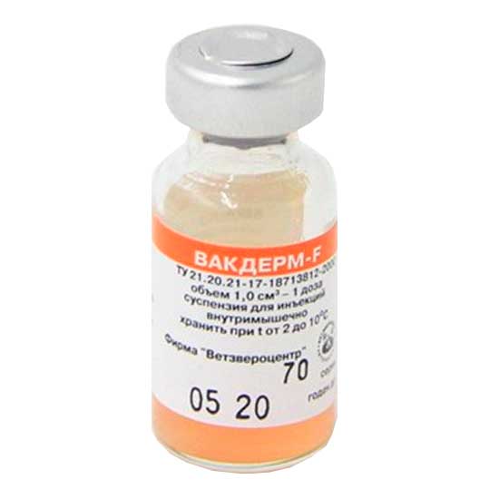 Вакдерм-F – вакцина против дерматофитозов кошек. Лекарственная форма - жидкость для инъекций. По внешнему виду вакцина представляет собой взвесь клеток дерматофитов желтовато-коричневого цвета различной интенсивности..