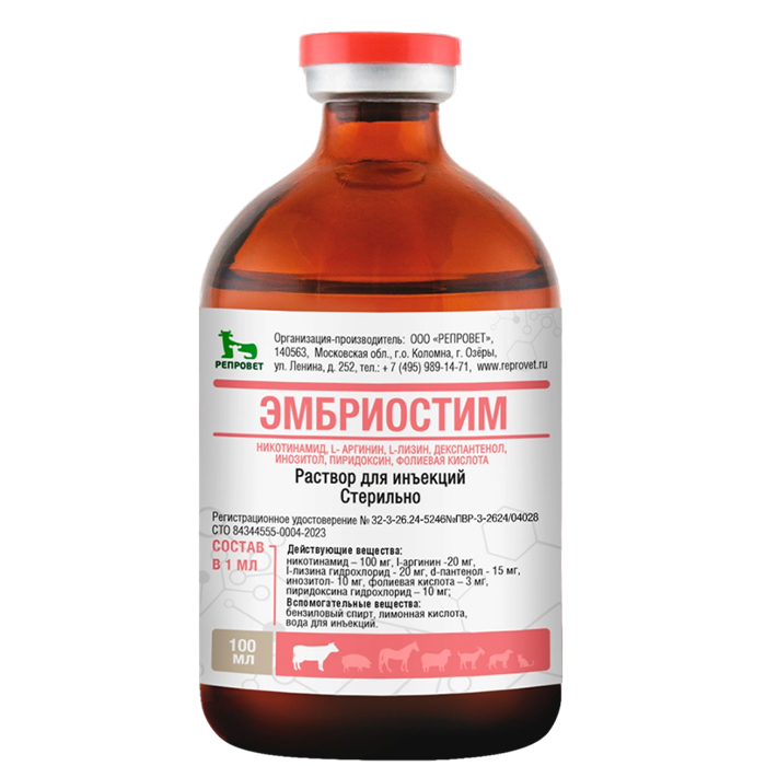 Эмбриостим - комбинированный витаминный препарат для повышения результативности искусственного осеменения у коров. По внешнему виду препарат представляет собой прозрачный раствор от светло-жёлтого до темно-жёлтого цвета.